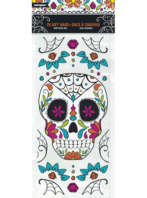 Sæt af 20 Catrina cellofan gave poser - Day of the Dead